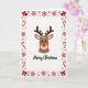 This Christmas greeting card is a joyful and whimsical design, perfect for spreading holiday cheer 🎅🏼. The adorable cartoon reindeer head with dark brown antlers and a bright red nose brings a smile to your face. Surrounding the reindeer are festive red snowflakes, candy canes, bows, and jingle bells, creating a magical holiday setting 🎄. The soft off-white background with light grey and red dots adds a touch of coziness to the card. The words "Merry Christmas" are elegantly written in black script, making this card the perfect choice for sending warm wishes to loved ones this holiday season 🎁. Spread joy and happiness with this delightful Christmas greeting card!