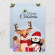 Den här vackra illustrationen av Reindeer och Penguin Jul Illustration har två favoritfigurer: en söt helgdag med en röd halsduk och en leende penguin med en julhatt. Tecknen omges av festlig inslag som en pepparkaksgubbe, polkagrisar och inslagna julklappar. Bakgrunden är blåblå med fallande snö, och överkanten omfattar hälsning "God jul". Den här teckningen är perfekt för helgdagskort och produkter som riktar sig till barn och roligt i familjen.