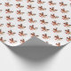 En julomslutning papper med en mönster av en söt renare med en stor röd näsa, streck och en plafbåge i sina tänder.