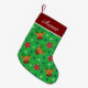 Add a cheerful touch to your holiday decor with this Cute Reindeer & Snowflake Christmas Stocking! Featuring an adorable reindeer face surrounded by snowflakes, stars, and poinsettias on a festive green background, this stocking is perfect for kids and adults alike. The back is solid red for a classic look, or you can choose to print the design on both sides. Personalize with a name or message, and customize the top and back colors to match your holiday style. Available in two sizes and three luxurious fabrics, this stocking makes a charming addition to your mantle. Pair it with the matching tree skirt, gift wrap, and gift bag for a coordinated Christmas look!