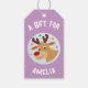 Cute Reindeer Snowflakes Kid`s Name Christmas Gift Tags. Cute reindeer with a red nose on a purple background with white snowflakes. The tag has a name template - personalize the tag with your name.