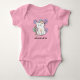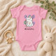 This adorable baby bodysuit features a sweet smiling cat at the center, surrounded by a charming background of pastel-colored retro flowers, creating a delightful and timeless design. Personalize it for the perfect gift!
