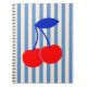 A charming retro-style notebook featuring bright red cherries on a soft blue and cream striped background. This clean and playful design brings summer vibes and vintage charm, making it perfect for school notes, journaling, planning, or everyday writing. Ideal for students, teens, and anyone who loves cute, simple, and aesthetic stationery.