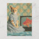 Cute Retro Ginger Cat With Goldfish Retro Collage Vykort