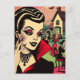 Cute Retro Goth Vampire Woman-Tecknader Vykort