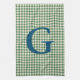 Cute Retro Grönt Gingham Play Mönster Monogram Kitchen Towel