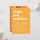 Lägg till några reflexer till bröllop med dessa grovfärgade inbjudningar som innehåller ett 70-talets estetiskt geometriskt blommönster i gult, rosa, orange och brunt.