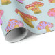 Cute Retro Hippie Mushroom Mönster i Pastel Blue Wrapping Papper