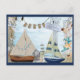 Två, söta, retro, leksak-segelbåtar med ett nautiskt "helgdag"-tema. Omfattar fiske, fyr, flaggor, stjärnfisk och en frakt i flaska. Bakgrund för marin blå gräns.