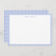 This personalized note card features a soft periwinkle blue gingham border with a clean white writing space and custom name at the top. The classic check pattern feels timeless and cheerful, making it perfect for everyday notes, thank you cards, or thoughtful handwritten messages. Simple and versatile, this design works well for personal stationery, correspondence, or gifting. Customizable text adds a polished touch while keeping the look relaxed and approachable.