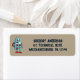 Returetiketterna har en söt illustration av en stil-robot i ljusblått och ditt namn och adress i marinblå bokstäver som ställs in mot en brant färgad bakgrund.