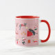 Kute retro-julillustration med katter runt Julgran, tittar presenter, skriv ut mönster på rosans bakgrund. Originalteckningar av Caroline Bonne Müller