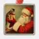 Cute Retro Santa med Kitten Illustration Julgransprydnad Metall