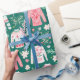 Papper för omslagning av den fuktiga sötaren har en djärv ännu snyggt vibe, som blandar ett retro och botaniskt tema med ett program för rosa av pastel och grönt av skogar i färg. Bakgrunden är en rik, djup grönt i skogen, som skapar en slående kontrast för det ljusare, mer lekande inslagen överst.