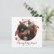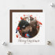 En elegant vinter-årsjukan med röda bär och söta små fåglar omringade med fyrkantigt helgdag med gyllene stjärnor. Uttrycket "God jul" är inställt i en elegant med ett helt handskrivet calligrafteckensnitt. Anpassa det här kvadratiska helgdag med ditt foto och text.