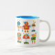 En söt, vacker design av roliga, färgstarka robotar. Barnens illustration är perfekt för en robotälskande pojke eller flicka. Robot kärlek robots livstema. Barnens roligt.