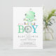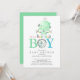 Det är en barnduschinbjudan med en samordnande grönt tillbaka.
