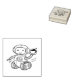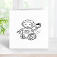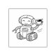 Svart och vit tecknad illustration av en söt futuristiska-robot som rullar snabbt medan man håller en kopp kaffe.