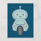 Kute och vänlig robot med en antenn ovanpå huvudet och ett handhjul för flytta runt. Hans arm har klämmor för att greppa sak och har ett behagligt känslolöst ansikte.