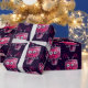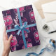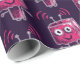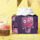 Den pappra taktäckningen med en mönster skapat från en liten roligt robot med en papper väska i rosa och lila färg.
