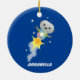 Cute-robot som flyger i illustration av rymdens te julgransprydnad keramik
