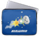 Cute-robot som flyger i illustration av rymdens te laptop fodral