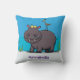 Cute, rolig hippopotamus med fågeltecknad kudde