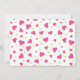 Bröllopinbjudan med ett sött mönster som består av rosa och grönt hjärtan på vit bakgrund.