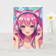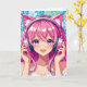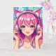 Cute Rosa Anime Girl med hörlurar på födelsedagen Kort