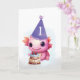 Det här berömvärda första födelsedagskortet har en söt rosa axolotl med en lila party hatt med nummer 1 på det. En fin vattenfärgskaka sitter framför, med en mjuk, pastelliserad, tvättande bakgrund, ge designen till en söt och vismisk känsla. Det inre budskapet önskemål den lilla en glatt dag fylld med tårta, stam och kärlek. Perfekt för att fira en baby första födelsedag med ett unikt, lekfullt kort som innehåller den populära axolotl och trendig som kommer att framträda! Perfekt för familjemedlemmar, vänner, eller någon som vill markera denna speciella milstolpe med en extra-aning cutness.