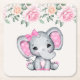 Cute Rosa Baby Elephant och Ro Gräns Underlägg Papper Kvadrat