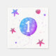 Pappra blöjor för den festila och söta flickan första födelsedagsfesten med en illustration av en lila ballong och nummer 1 i vit typografi och rosa och lila stjärnor. Underbaren för varje flickas första födelsedag eller ett år firande, kommer party-blöjorna att bli en glädje för användan. Illustrerad och designad av Patricia Alvarez.