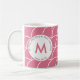 Cute Rosa BE FORTFARANDE OCH KNOW Fish Scales Monogram Coffee Mugg med Christian Bible verse based on Psalm 46:10 - BE FORT OCH VET ATT JAG ÄR GOD. Designen visar en geometrisk mönster av överlappande cirklar i rosa och vitt. I mittcirkeln finns det en modern MONOGRAM. All text är ANPASSADE, så att du kan lägga till ditt namn, bibelns favorittext eller annan text och lägga till din ursprungliga text. Konstruktionen upprepas på baksidan. Detta är en enkel, söt utformning som kommer att samordnas med moderna tillbehör till dricksprodukter, och detta rosa monogram Christian mugg skulle ge en underbar gåva till jul, födelsedagar och "bara för" dagar. Välj mellan ett stort urval inspirerande Christian mugg och annan drickvara, designad av #bereandesign