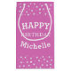 Cute Rosa Birthday Star Mönster Girly Gift Bag. Grattis på födelsedagen presentväska för flickor. Utformningen har vita stjärnor på en rosa bakgrund. Grattis på födelsedagen-presentväska som är särskilt lämplig för en flickas födelsedag. Anpassa det med ditt namn.