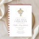Personlig Cute Rosa Blommigt Wandeand Kor första inbjudningskort för kommunision.
