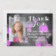 Cute Rosa Bubbles Chalkboard Girl Birthday Tack för ditt kort. Kortet har lila bubblor och gnistor på en mörk grått- krita. Anpassa det här fotokortet med ditt meddelande, namn och ditt barns foto.