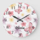 Cute Rosa Butterfly Monogram Stor Klocka