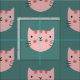 Cute Rosa Cat Grönt Mönster Tyg