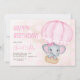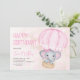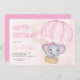 Cute Rosa Elephant Balloon 1:a födelsedagen Inbjudningar