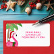 Den här flaggans juladressetikett har en söt rosa flamingo med en julhatt som står med handflatan träd som är dekorerad med helgdag.