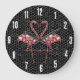 En söt rosa flamingo-utskrift, för flamingos är vackert och vilken liten flicka inte kärlek flamingos! De här två kyssande flamingorna skapar lite hjärta i centrum. De består av ett mosaiskt utseende och känner för ge ett modernt och abstrakt utseende. Contemporary Abstrakt Modern Black Rosa Flamingo Large Clock