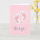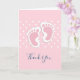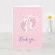 Tack för ditt kort med en älsklingsbild av fotavtryck från rosa flicka med vitt polka dots på en rosa bakgrund bakom illustrationen. Meddelande där du kan ändra/anpassa.