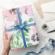 Cute Rosa Flowers Grönt Blad Mönster Presentpapper