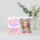 Cute Rosa Glitter Girly Birthday Tack för foto Postcard för flickor med foto av anpassningsbarna och tack för texten. Ett anpassbart födelsedagstack för dina vänner och din familj. Ladda upp fotot och anpassa vykortet med ditt namn och din text. vykortet har en rosa tecknad ram och rosa glitter. Underbart som tack för att du fick kort för flickor.