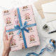 Den här söta julklappen har en vacker rosa gnom som håller en liten gåva, flera färgstarka julprydnader, en blekens rosa bakgrund och text som lyder: God jul. Denna viskartade papper är perfekt för dem som har kärlek rosa eller dem som dekorerar sitt helgdag hemma i pasteller.