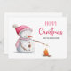 Kort för familjen Cute God jul med helgdag med illustration av ett sött snögubbe med rosa hatt och scarf-rostande marshmallow. Anpassa texten för att lägga till ditt eget hjärtliga budskap och skicka den kommande julhelgen till dina nära och kära. Illustrerad och designad av Patricia Alvarez.