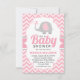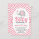 Cute Rosa Grått White Modern Elephant Girl Baby Shower-inbjudan | Chevron Baby Shower-inbjudan