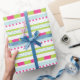 Cute Rosa Grönt Mint Rand Mönster Presentpapper