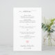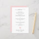Modern bröllop-meny med en enkel design med texten i mjukt grått med ord, "meny" i ett handskriftsteckensnitt för elegant. Vid grund ligger ett rosa i pastellerna tillsammans med namn och datum. De här bröllop-menyerna i billigt med en söt design är ett tillägg till din mottagning och skrivs ut på lakan av papprare för ett budgetvänligt alternativ.