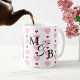 Cute rosa-hjärtan med mönster-par monogramfoto kaffemugg